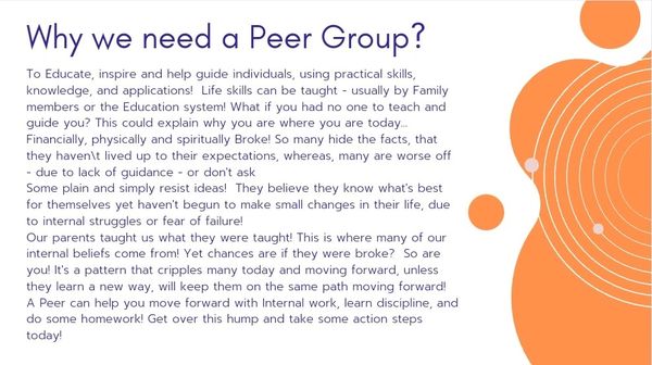 Whether you're looking for assistance with creating a budget, setting up homeschooling, apothocary and herbs knowledge, or how to customize a workout routine after a health crisis, these Peers have real life experiences, to ensure you leave with the confidence you need, making better Life Choices, moving forward!